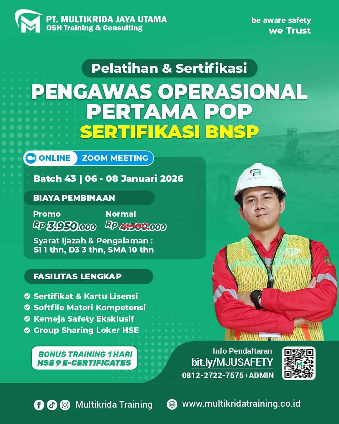 BAGUS SEKALI Berdasarkan 137 ulasan Fahrun Nizar09/09/2025Trustindex memverifikasi bahwa sumber asli ulasan adalah Google. Terimakasih sudah manjadi jembatan untuk belajar K3,terimakasih sudah memberikan arahan dan kelancaran selama pelatihan. Ridwan Kamarullah09/09/2025Trustindex memverifikasi bahwa sumber asli ulasan adalah Google. Mengikuti pelatihan Online AK3U di Multikrida sangat memuaskan dan efisien, materi yang disampaikan oleh para praktisi sangat mudah di pamahami. Sukses dan Jaya selalu Multikrida Jaya Utama, next Insya allah bisa ambil Smk3 atau POP Ramdan Hidayat03/09/2025Trustindex memverifikasi bahwa sumber asli ulasan adalah Google. Pelatihan AK3 UMUM di PT MJU fleksibel, bisi ikut pelatihan online tapi bisa sambil kerja juga, terima kasih PT MJU semoga semakin maju dan sukses selalu 🤲 Joe Saputra25/08/2025Trustindex memverifikasi bahwa sumber asli ulasan adalah Google. mantap muhammadrefli 0125/08/2025Trustindex memverifikasi bahwa sumber asli ulasan adalah Google. Materinya semuanya daging dan pemateri keren-keren Saeful Adnan11/08/2025Trustindex memverifikasi bahwa sumber asli ulasan adalah Google. Terima kasih MJU atas pelatihan POP nya berjalan dengan baik dan sukses,semoga ke depanya MJU semakin jaya Aldi Anor11/08/2025Trustindex memverifikasi bahwa sumber asli ulasan adalah Google. Terimakasih buat PT. MJU semoga kedepannya sukses selalu